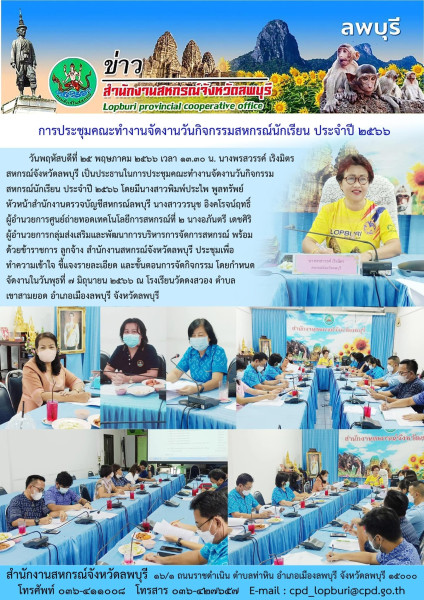 สำนักงานสหกรณ์จังหวัดลพบุรี ประชุมเพื่อทำความเข้าใจ ชี้แจงรายละเอียด และขั้นตอนการจัดกิจกรรม โดยกำหนดจัดงานในวันพุธที่ 7 มิถุนายน 2566 ณ โรงเรียนวัดดงสวอง ตำบลเขาสามยอด อำเภอเมืองลพบุรี จังหวัดลพบุรี