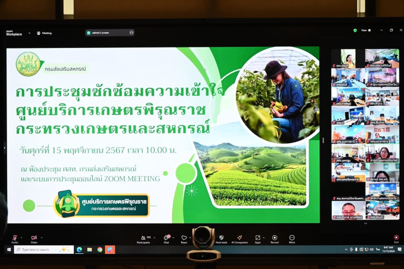 เป็นประธานในการประชุมและถ่ายทอดสัญญาณจากห้องประชุมศูนย์เทคโนโลยีสารสนเทศและการสื่อสาร ชั้น ๕ กรมส่งเสริมสหกรณ์ เทเวศร์ กรุงเทพมหานคร ผ่านระบบ Zoom Meeting ไปยังหน่วยงานที่เกี่ยวข้อง สำหรับการประชุมในครั้งนี้ เพื่อซักซ้อมแนะนำการให้บริการของศูนย์บริการเกษตรพิรุณราช แก่เจ้าหน้าที่กรมส่งเสริมสหกรณ์ทุกภาคส่วน โดยกระทรวงเกษตรและสหกรณ์ ได้จัดตั้งศูนย์บริการประชาชนภาคการเกษตร เพื่อให้บริการประชาชนในการขอรับบริการรับเรื่องร้องเรียน/ร้องทุกข์ และงานบริการด้านการเกษตร เน้นให้เกษตรกรได้รับบริการที่มีความสะดวก สามารถขอรับบริการ ณ จุดเดียว ซึ่งมีกำหนดการเปิดให้บริการศูนย์บริการเกษตรพิรุณราช ศูนย์บริการเครือข่าย ในวันที่ ๒๑ พฤศจิกายน ๒๕๖๗ จำนวน ๑,๙๓๗ ศูนย์