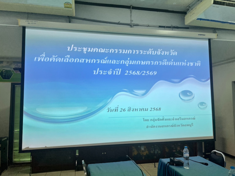 วันอังคารที่ ๒๖ สิงหาคม ๒๕๖๘ เวลา ๑๓.๓๐ น. นายทินกร ตรีเวช สหกรณ์จังหวัดลพบุรี เป็นประธานในการประชุมคณะกรรมการคัดเลือกสหกรณ์และกลุ่มเกษตรกรดีเด่นแห่งชาติ ระดับจังหวัดลพบุรี ปีงบประมาณ ๒๕๖๘/๒๕๖๙ โดยมีผู้แทนสำนักงานตรวจบัญชีสหกรณ์ลพบุรี สำนักงานเกษตรและสหกรณ์จังหวัดลพบุรี สำนักงาน ธ.ก.ส. จังหวัดลพบุรี และเจ้าหน้าที่สำนักงานสหกรณ์จังหวัดลพบุรี เข้าร่วมประชุม เพื่อพิจารณาคัดเลือกสหกรณ์และกลุ่มเกษตรกรดีเด่นแห่งชาติ ระดับจังหวัดลพบุรี ประจำปีงบประมาณ ๒๕๖๘/๒๕๖๙ ณ ห้องประชุมสำนักงานสหกรณ์จังหวัดลพบุรี