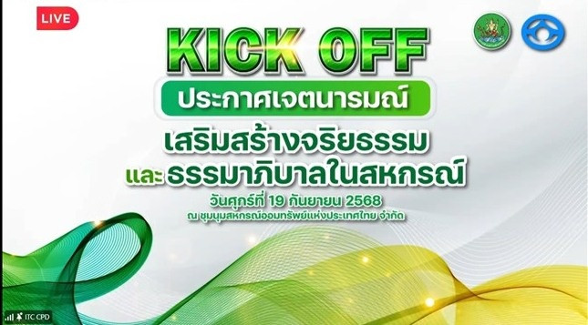 วันศุกร์ที่ ๑๙ กันยายน ๒๕๖๘ เวลา ๑๐.๐๐ น. สำนักงานสหกรณ์จังหวัดลพบุรี โดยนางรำไพ โพธิดอกไม้ ตำแหน่ง ผู้อำนวยการกลุ่มส่งเสริมและพัฒนาการบริหารการจัดการสหกรณ์ พร้อมด้วยบุคลากรสำนักงานสหกรณ์จังหวัดลพบุรี เข้าร่วมการประกาศเจนารมณ์จริยธรรมและธรรมาภิบาลในการดำเนินงานของสหกรณ์ มีวัตถุประสงค์เพื่อสร้างความเข้าใจของสหกรณ์นอกภาคการเกษตรร่วมกันในเป้าหมาย ให้สหกรณ์ดำเนินธุรกิจอย่างมีธรรมาภิบาลและพัฒนาสหกรณ์นอกภาคการเกษตรให้มีการบริหารจัดการที่ดี สามารถรักษาและยกระดับผลการประเมินความเข้มแข็งของสหกรณ์ มีกลุ่มเป้าหมายเป็นสหกรณ์นอกภาคการเกษตรที่เข้าร่วมโครงการส่งเสริมและพัฒนาสถาบันเกษตรกร จำนวน ๙ แห่ง ผ่านระบบ Zoom Meeting โดยมี นายวิศิษฐ์ ศรีสุวรรณ์ อธิบดีกรมส่งเสริมสหกรณ์ เป็นประธาน ณ ห้องประชุมสำนักงานสหกรณ์จังหวัดลพบุรี อำเภอเมืองลพบุรี จังหวัดลพบุรี