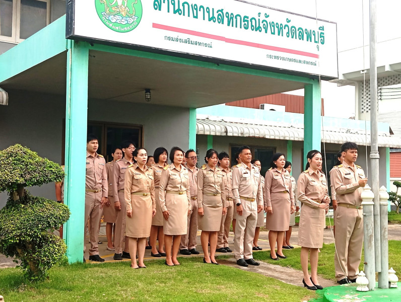 วันจันทร์ที่ 29 กันยายน 2568 เวลา 08.00 น. นายทินกรตรีเวชสหกรณ์จังหวัดลพบุรี พร้อมด้วยข้าราชการและเจ้าหน้าที่สำนักงานสหกรณ์จังหวัดลพบุรี จัดกิจกรรมเคารพธงชาติและร้องเพลงชาติไทย 28 กันยายน 2568 (Thai National Flag Day) ประจำปี 2568 เนื่องในวันครบรอบ 108 ปี ตามมติคณะรัฐมนตรีที่กำหนดให้วันที่ 28 กันยายนของทุกปี เป็นวันพระราชทานธงชาติไทย เพื่อน้อมรำลึกในพระมหากรุณาธิคุณพระบาทสมเด็จพระมงกุฎเกล้าเจ้าอยู่หัว ที่ทรงพระราชทานธงไตรรงค์เป็นธงชาติไทย และสร้างเสริมความภูมิใจในความเป็นชาติ ก่อเกิดเป็นพลังยิ่งใหญ่ในการพัฒนาชาติไทยให้วัฒนาสถาพร ณ ลานกิจกรรมหน้าเสาธง สำนักงานสหกรณ์จังหวัดลพบุรี