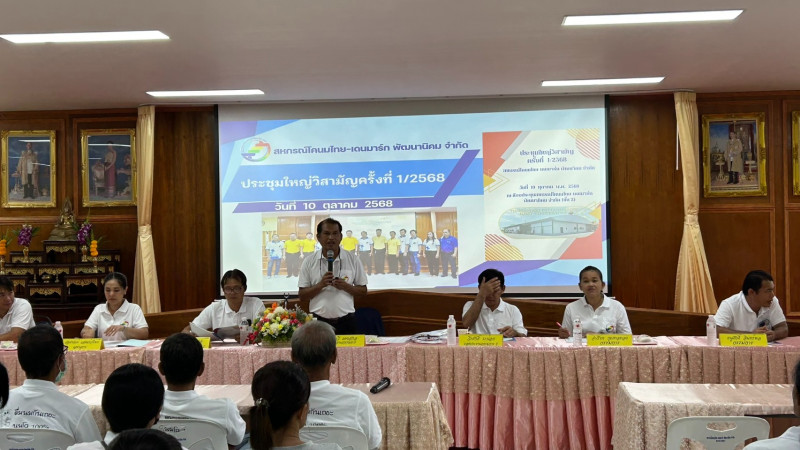 วันศุกร์ที่ ๑๐ ตุลาคม ๒๕๖๘ เวลา ๐๙.๐๐ น. สำนักงานสหกรณ์จังหวัดลพบุรี โดยนางจารุวรรณ พุ่มพฤกษ์ ผู้อำนวยการกลุ่มส่งเสริมสหกรณ์ ๑ พร้อมด้วย นายศวัสกร ขุนภักดี นักวิชาการสหกรณ์ปฏิบัติการ และนายนเรนทร์ฤทธิ์ คุณชื่น นักวิชาการสหกรณ์ปฏิบัติการ เข้าร่วมประชุมใหญ่วิสามัญ ครั้งที่ ๑/๒๕๖๘ ของสหกรณ์โคนมไทย-เดนมาร์กพัฒนานิคม จำกัด เพื่อให้คำแนะนำในการดำเนินการตามระเบียบวาระการประชุมใหญ่วิสามัญและการดำเนินงานของสหกรณ์ภายใต้พระราชบัญญัติสหกรณ์ ข้อบังคับ ระเบียบ และกฎหมายอื่นที่เกี่ยวข้อง ณ ห้องประชุม สหกรณ์โคนมไทย-เดนมาร์กพัฒนานิคม จำกัด ชั้น ๒ อำเภอพัฒนานิคม จังหวัดลพบุรี