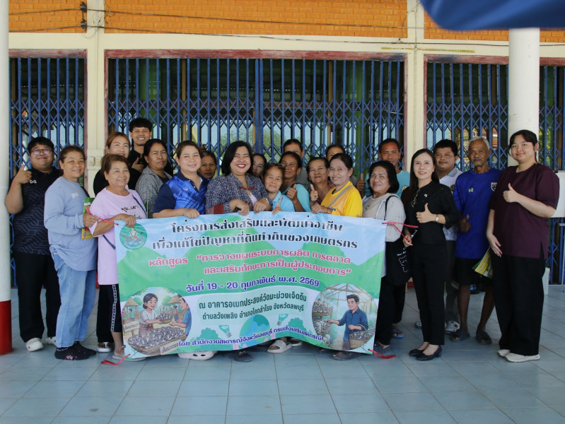 วันที่ ๑๙ - ๒๐ กุมภาพันธ์ ๒๕๖๙ สำนักงานสหกรณ์จังหวัดลพบุรี โดยกลุ่มส่งเสริมและพัฒนาธุรกิจสหกรณ์ และกลุ่มส่งเสริมสหกรณ์ ๒ จัดอบรมส่งเสริมพัฒนาอาชีพและการตลาด โครงการส่งเสริมและพัฒนาอาชีพ เพื่อแก้ไขปัญหาที่ดินทำกินของเกษตรกร หลักสูตร “การวางแผนระบบการผลิต การตลาด และเสริมทักษะ การเป็นผู้ประกอบการ” ประจำปีงบประมาณ พ.ศ. ๒๕๖๙ ให้แก่สมาชิกกลุ่มเกษตรกรทำไร่ตำบลวังเพลิง ในที่สาธารณประโยชน์บ้านมะม่วงเจ็ดต้น หมู่ ๙ ตำบลวังเพลิง อำเภอโคกสำโรง จังหวัดลพบุรี เป้าหมายจำนวน ๑๕ ราย โดยมีวัตถุประสงค์เพื่อส่งเสริมพัฒนาอาชีพและส่งเสริมด้านการตลาดแก่เกษตรกรที่ได้รับการจัดสรรที่ดินทำกิน ตามนโยบายรัฐบาล (คทช.) ให้มีรายได้เพียงพอต่อการดำรงชีพ มีคุณภาพชีวิตที่ดีขึ้น และเพื่อส่งเสริมสนับสนุน ให้เกิดการรรวมกลุ่มตามความเหมาะสมของพื้นที่ พัฒนาสถาบันเกษตรกรและชุมชนให้มีความเข้มแข็ง โดยได้รับเกียรติจาก นางสาวศุภามน ศรีพร เป็นวิทยากรให้ความรู้ด้านการวางแผนการผลิตและต้นทุน การเพาะเลี้ยงเห็ดนางรมเทา ฝึกปฏิบัติการผสมก้อนเห็ด แนวทางการวางแผนการตลาดและช่องทางการ จัดจำหน่ายผลผลิต ณ อาคารอเนกประสงค์วัดมะม่วงเจ็ดต้น ตำบลวังเพลิง อำเภอโคกสำโรง จังหวัดลพบุรี